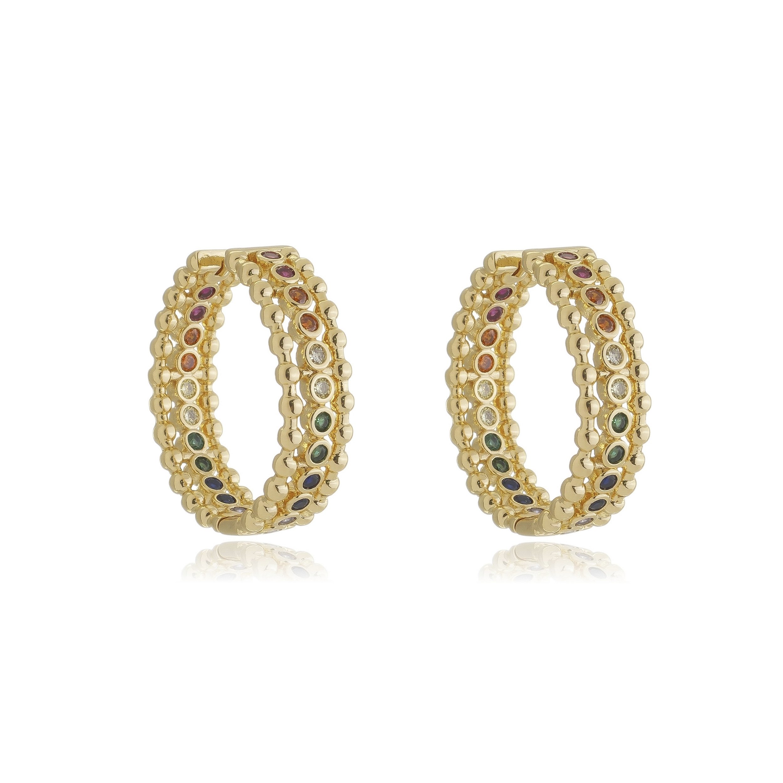 Brinco de argola cravejado de zirconia rosa, laranja, amarelo, azul, verde e lilás