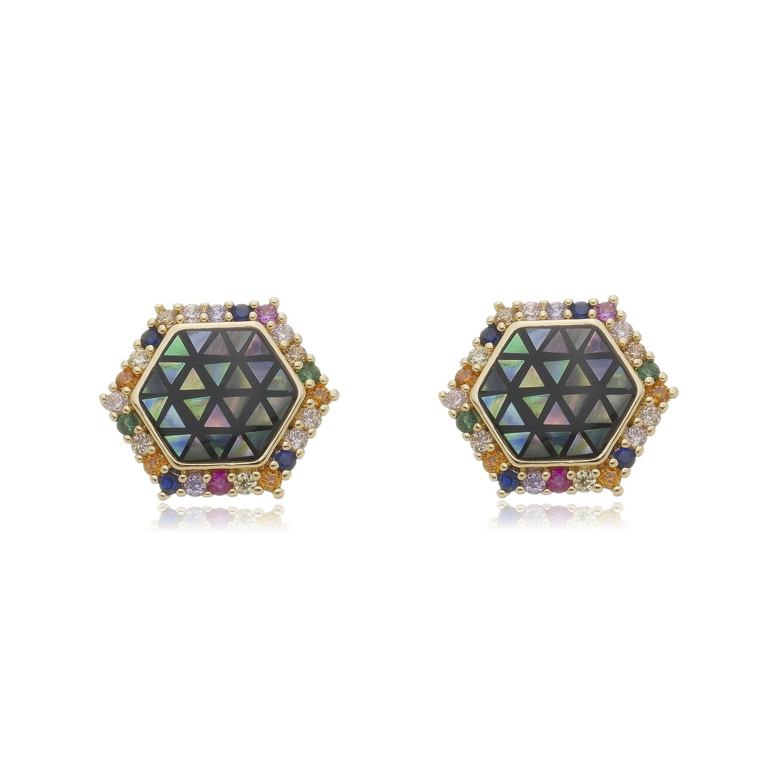 Brinco de base cravejado de zirconia colorida banho em ouro 18k