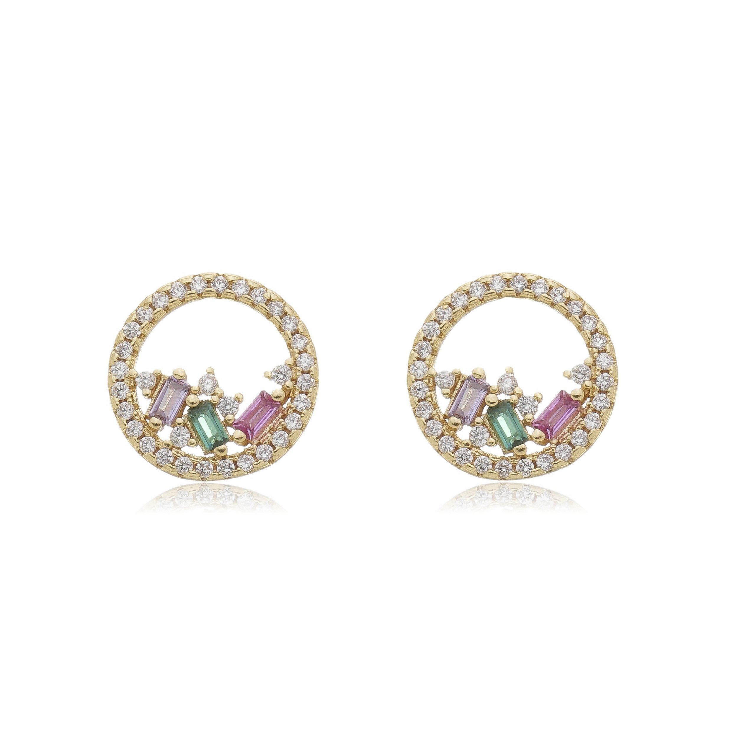 Brinco de base cravejado de zirconia cristal banho em ouro 18k