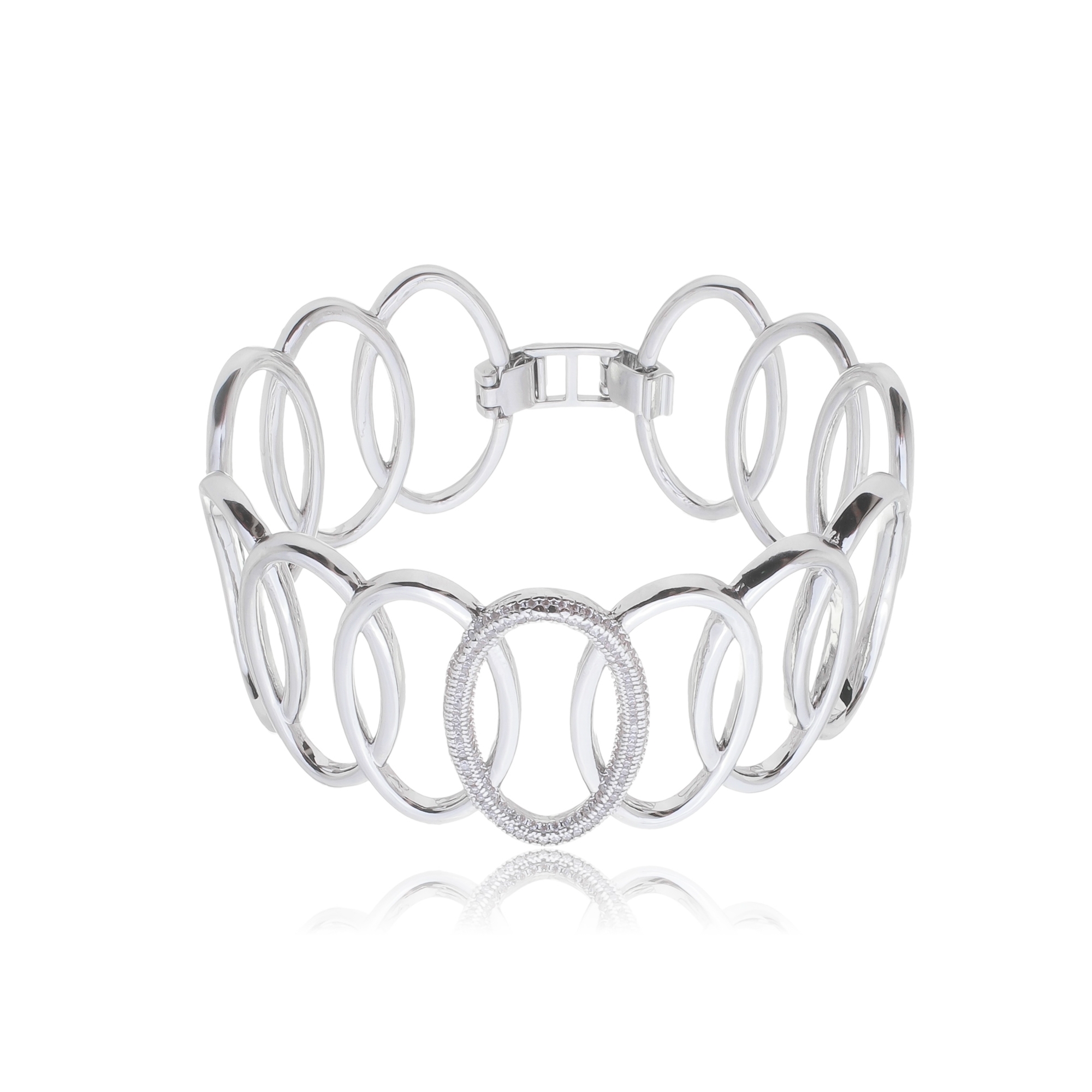 Esta elegante pulseira de semijoias é cravejado com pedras de zircônia brilhantes, dando-lhe um toque sofisticado. Feito com banho de rodio branco, esta pulseira é durável e resistente a danos, tornando-o uma opção perfeita para o uso diário. Adicione um toque de brilho com estpulseira cravejado de zircônia e compre agora online.