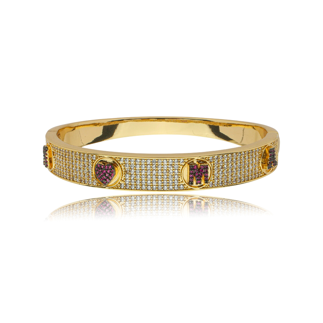 Bracelete cravejado de zircônia cristal com detalhes em zircônia pink