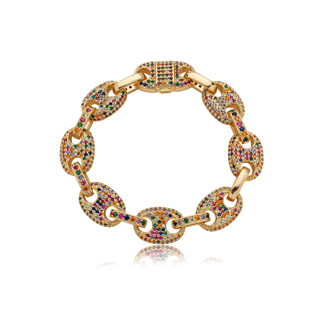 Adicione um toque de brilho ao seu estilo com nossa pulseira cravejada de zirconia banho em Ouro 18k. Essa pulseira sofisticada é feita com materiais de alta qualidade com o banho em ouro 18k, garantindo sua durabilidade e brilho duradouro. A zircônia é uma pedra sintética popular e elegante que oferece brilho e transparência semelhantes aos diamantes. Com seu design atual, a pulseira é a escolha perfeita para complementar um look casual ou formal. Compre agora online
