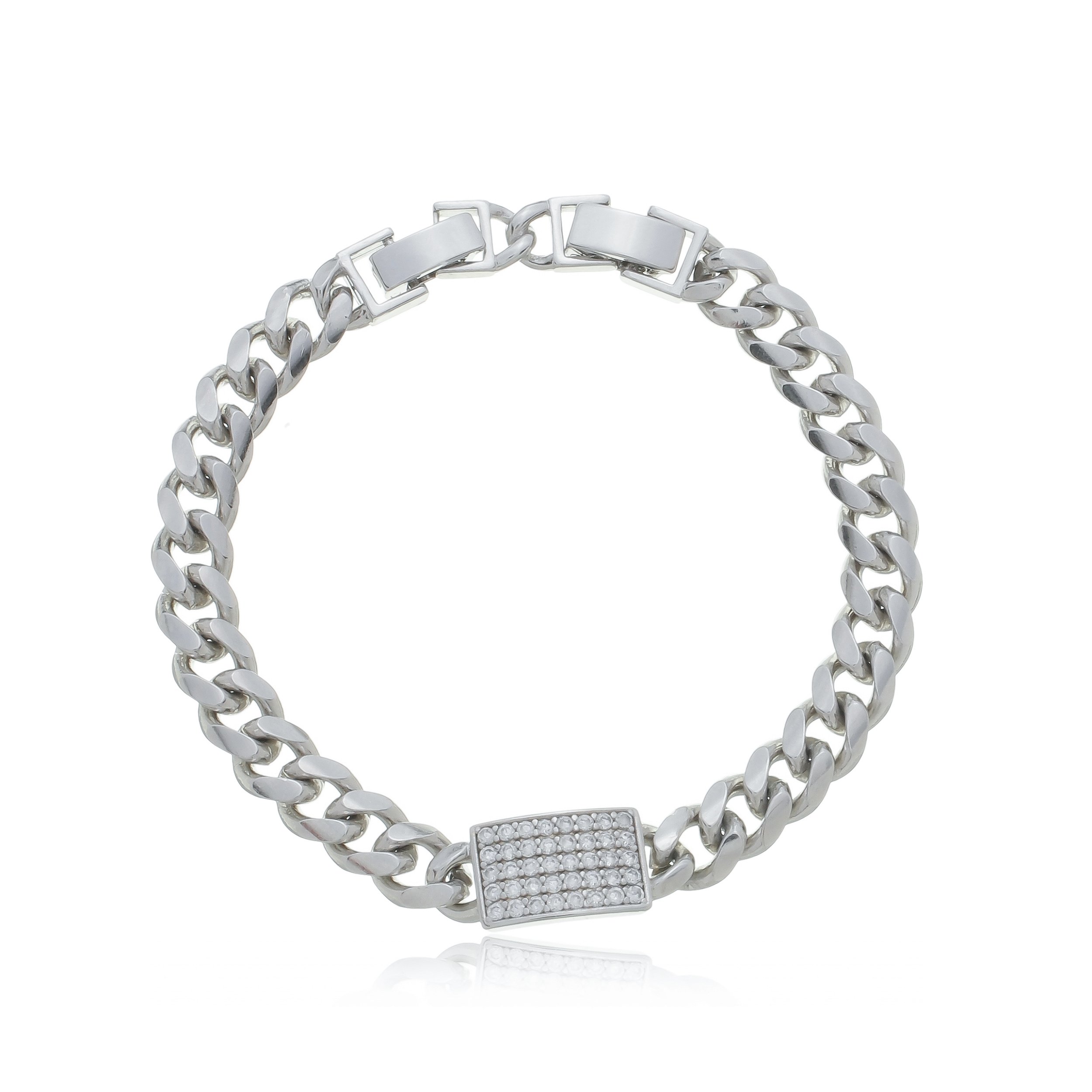 Pulseira de corrente com fecho cravejeado de zircônia cristal