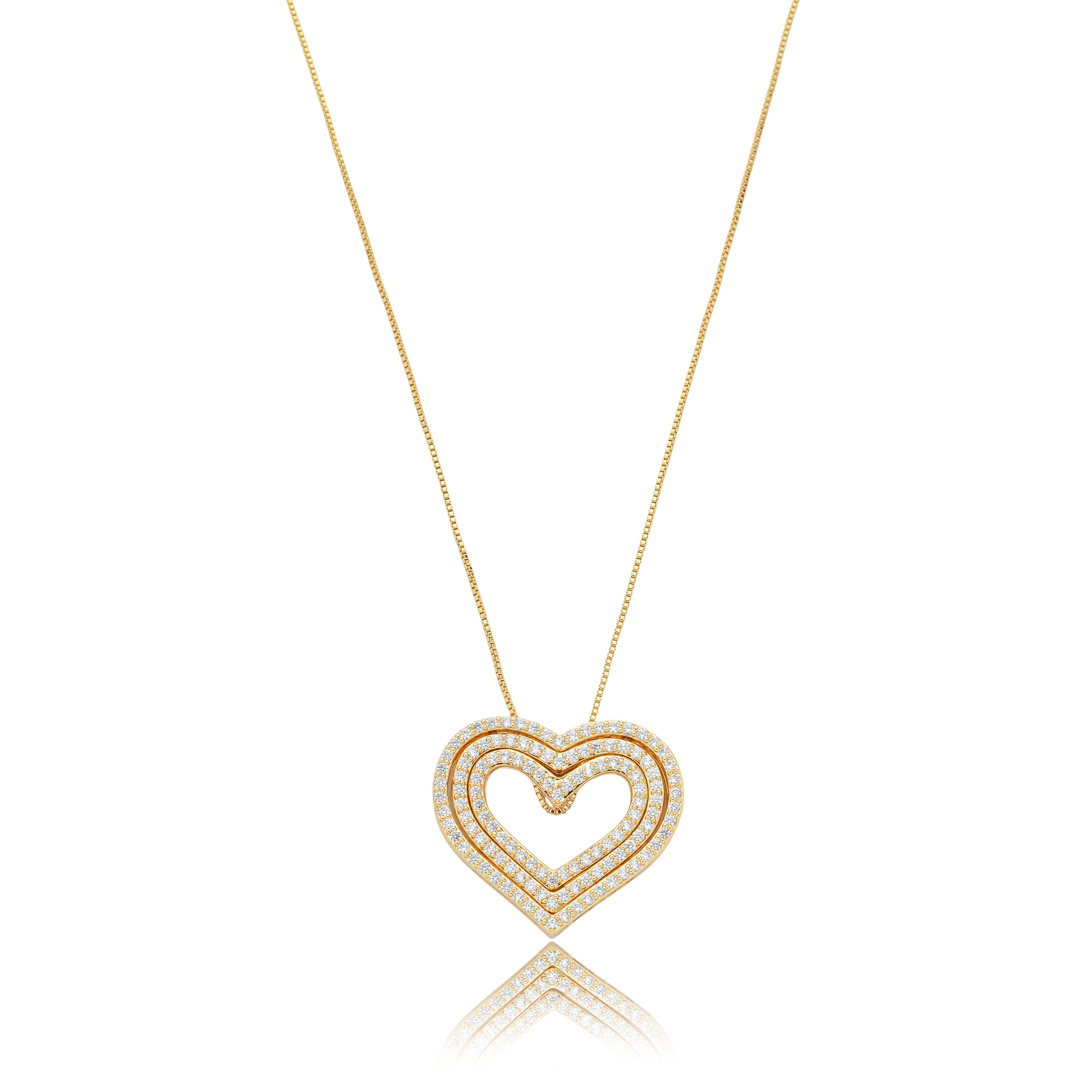 Colar com pingente de coração cravejado de zirconia cristal banho em ouro 18k