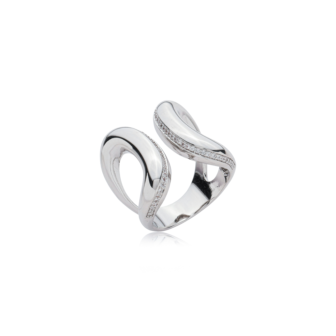 Anel cravejado de zirconia cristal banho em rodio branco