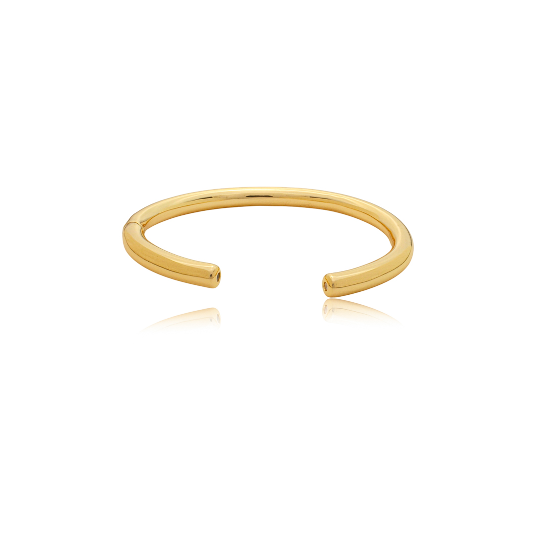 Nosso bracelete é uma peça lisa, sofisticada e atemporal, perfeita para compor qualquer look com elegância. Com banho de ouro 18k, ele oferece um brilho intenso e acabamento refinado, que valoriza ainda mais o seu estilo.