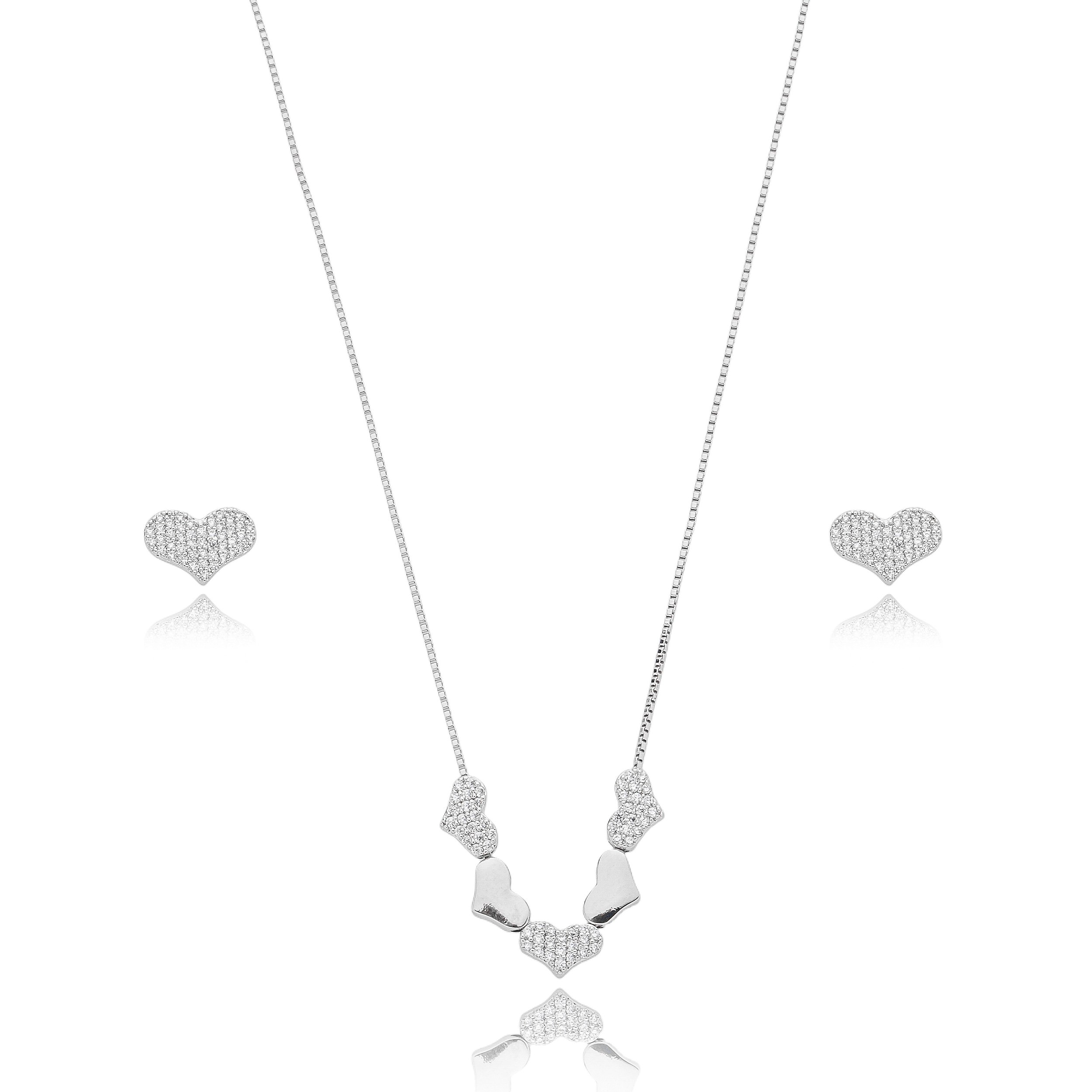Conjunto de brinco e colar de coração cravejado de zircônia cristal