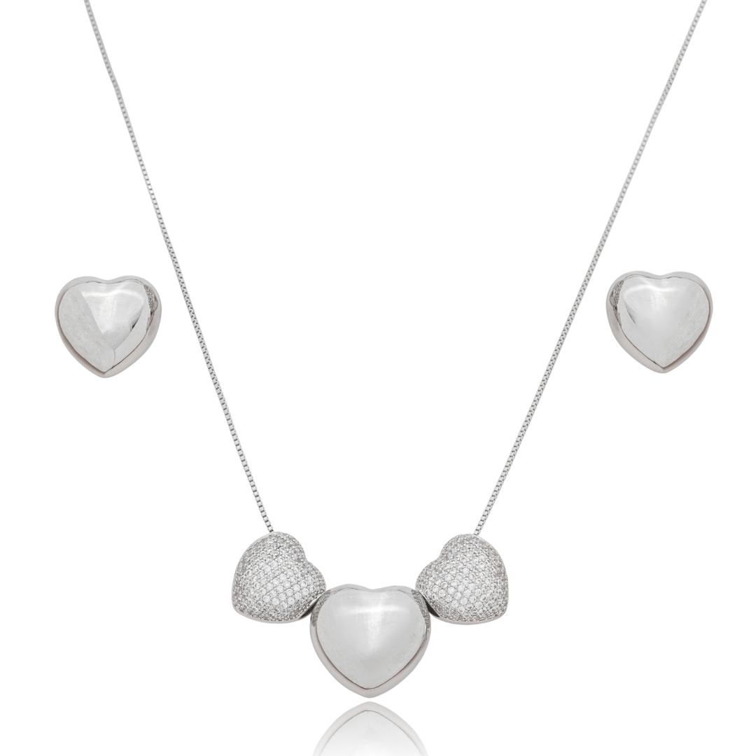 Conjunto de brinco e colar com detalhe em zirconia cristal