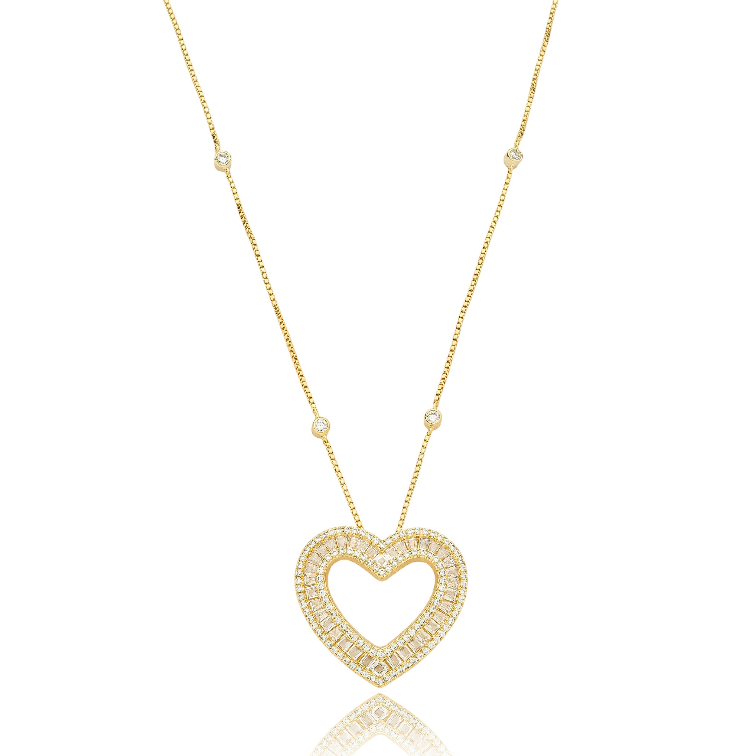 Colar com pingente de coração cravejado de zirconia cristal banho em ouro 18k