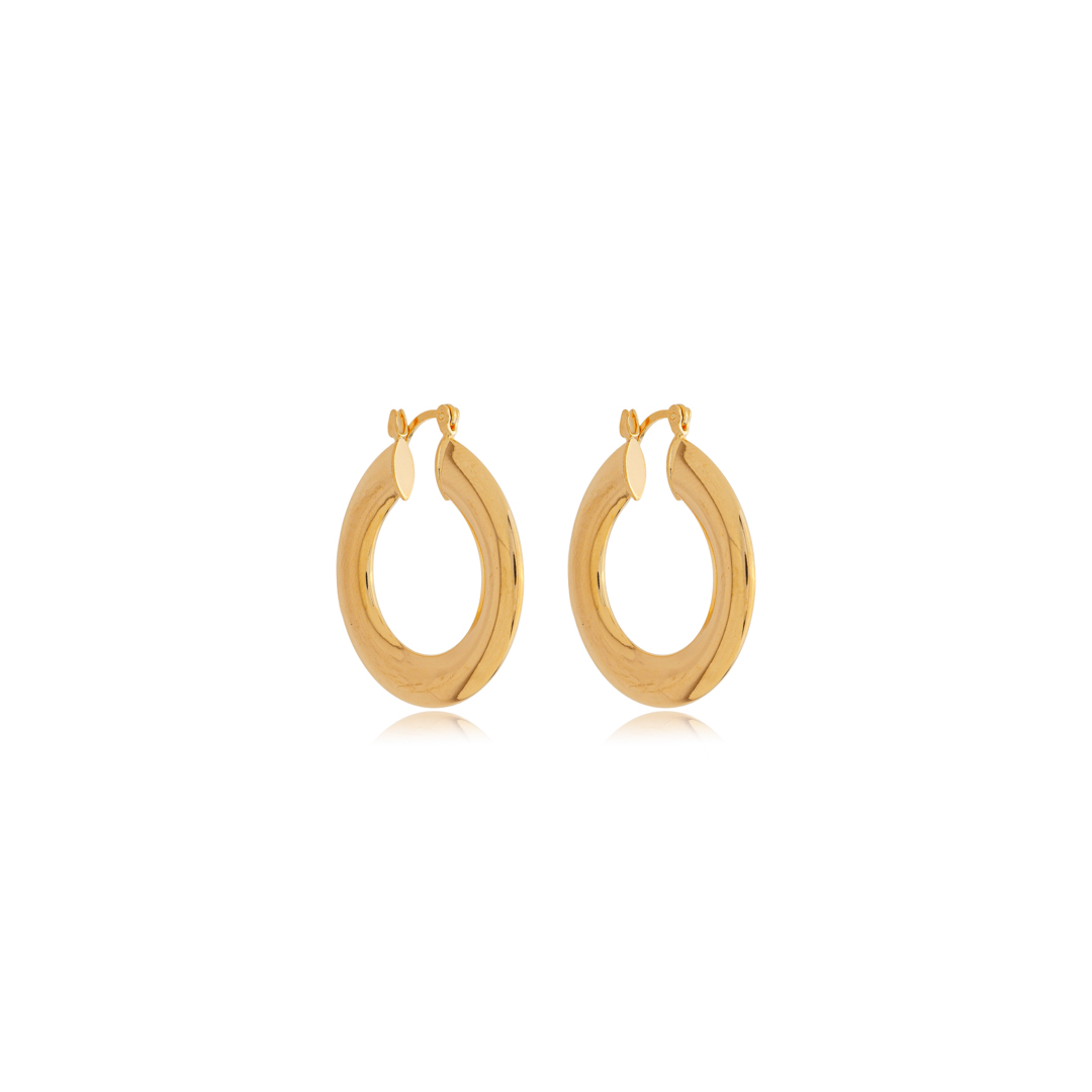 Brinco de argola liso banho em ouro 18k