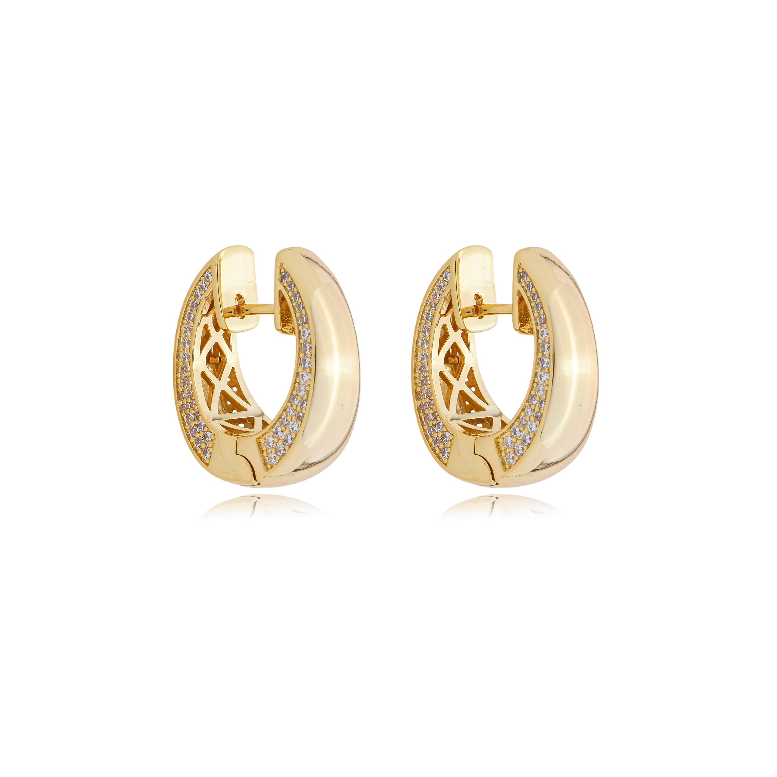 Este brinco de semijoias é a escolha perfeita para complementar o estilo elegante. Com um design cravejado de zircônias, ele brilha intensamente e adiciona um toque de sofisticação a qualquer look. O banho de ouro 18k garante durabilidade e brilho duradouro. As zircônias são pedras sintéticas de alta qualidade, criadas para imitar a aparência da diamante. Se você está procurando um acessório de semijoias, este brinco é a escolha certa.