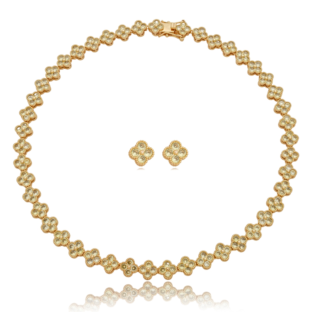 Conjunto de brinco e colar cravejado de zircônia citrino