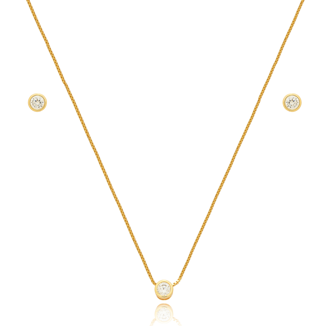 Conjunto de brinco e colar cravejado de zircônia cristal
