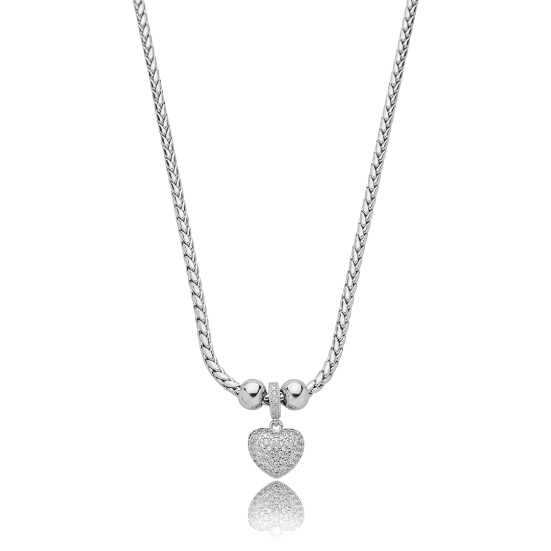 Colar com pingente de coração cravejado de zirconia cristal banho em rodio branco