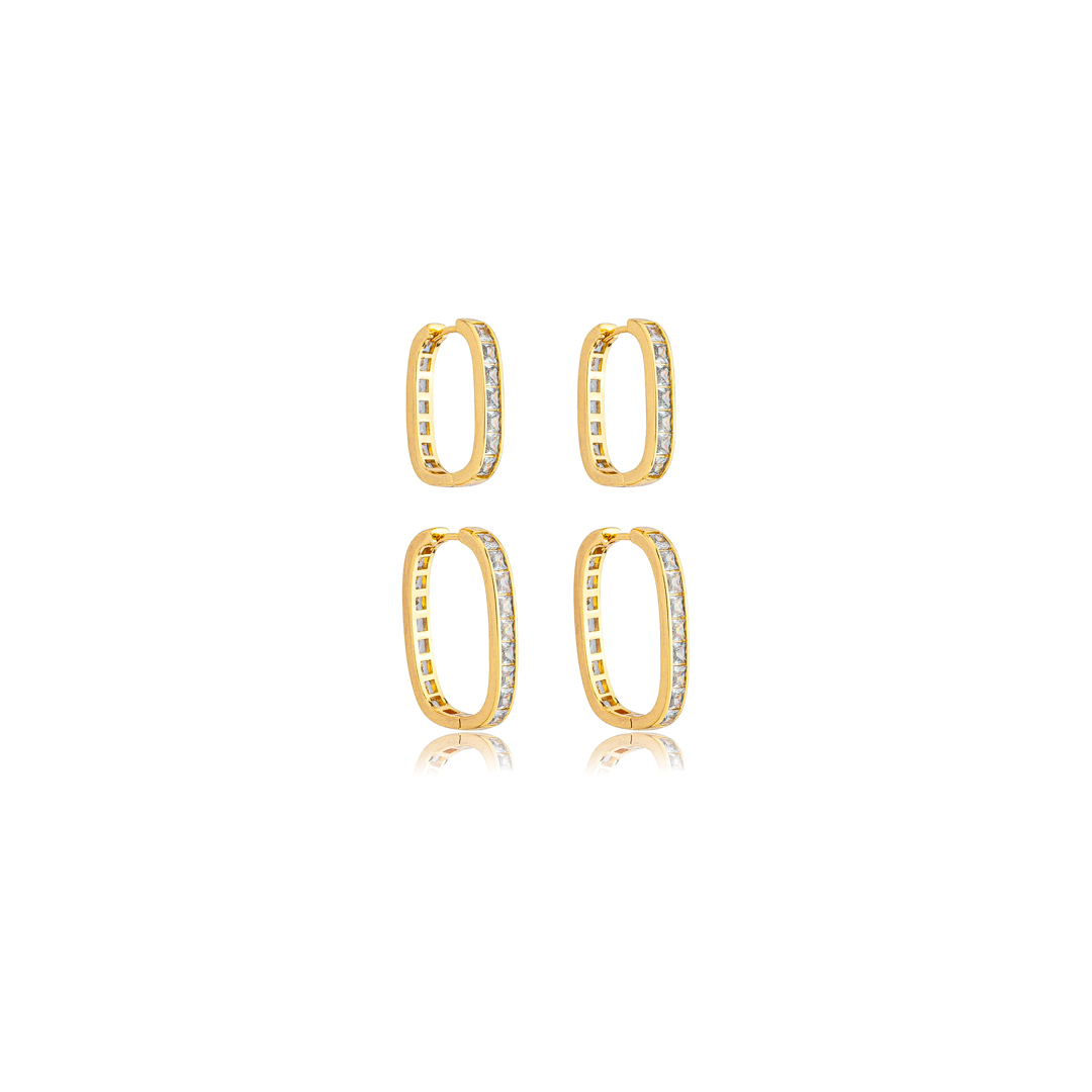 Dupla de argolas cravejadas de zircônia cristal