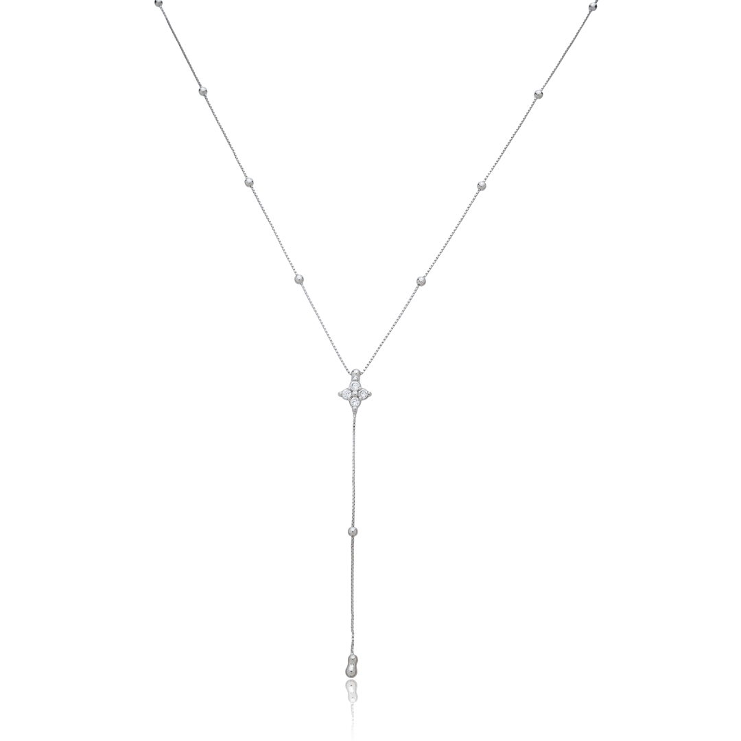 Colar com detalhe cravejado de zircônia cristal banho em ródio branco