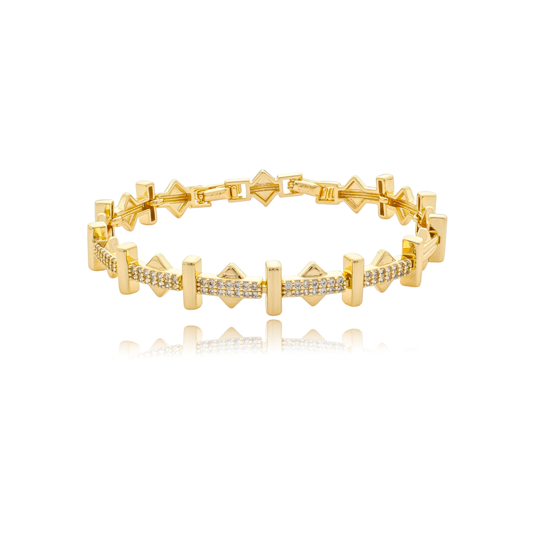 Pulseira cravejada de zircônia cristal banho em ouro 18k