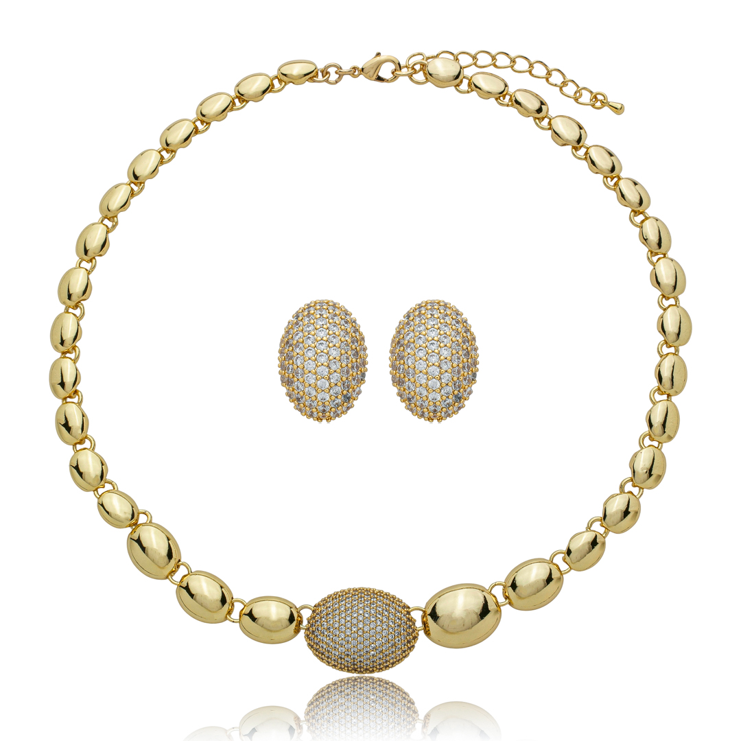 Conjunto de brinco e colar cravejado de zircônia cristal