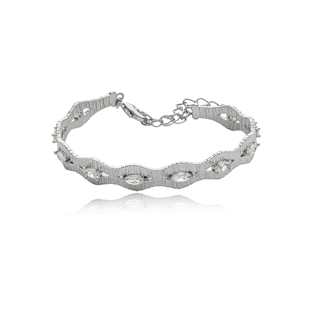 Delicadeza e sofisticação definem este bracelete exclusivo. Banhado a ródio branco, revela um brilho luxuoso e acabamento de alta qualidade, garantindo durabilidade e resistência ao desgaste. As zircônias cuidadosamente aplicadas trazem um toque de brilho sutil, elevando a elegância do design. Um bracelete atemporal, perfeito para compor looks refinados com leveza e estilo.