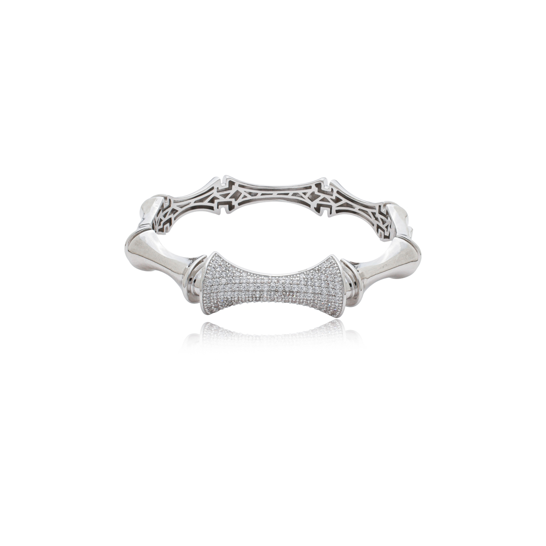 Delicadeza e sofisticação definem este bracelete exclusivo. Banhado a ródio branco, revela um brilho luxuoso e acabamento de alta qualidade, garantindo durabilidade e resistência ao desgaste. As zircônias cuidadosamente aplicadas trazem um toque de brilho sutil, elevando a elegância do design. Um bracelete atemporal, perfeito para compor looks refinados com leveza e estilo.