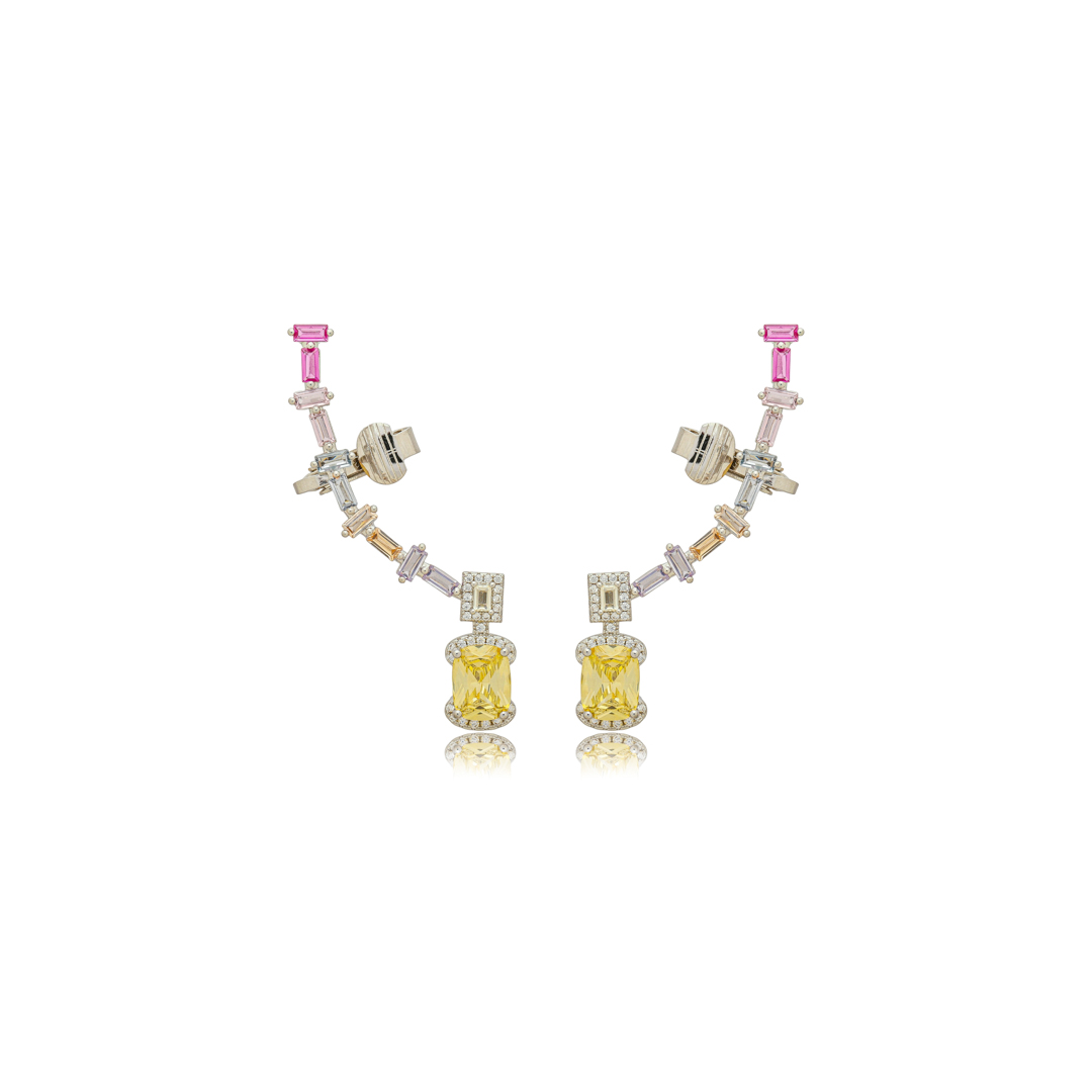 Brinco ear cuff cravejado de zircônia rainbow rodeado de zircônia cristal