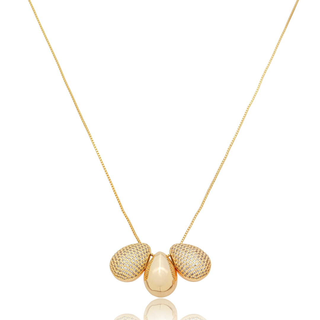 Colar com pingente de coração cravejado de zirconia cristal banho em ouro 18k