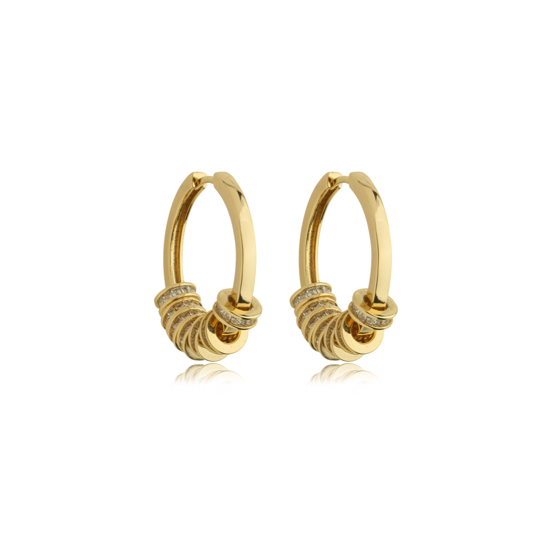 Brinco de argola cravejado de zirconia cristal banho em ouro 18k